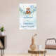 The watercolor cute teddy bear swinging on a eucalyptus wreath with dusty blue flowers is a charming theme for a boy baby shower. This design can be used for a welcome porch sign or a large format poster, creating a whimsical and welcoming atmosphere for the celebration. The soft colours and adorable imagery make it a perfect choice for a sweet and memorable event.