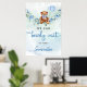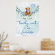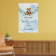 The watercolor cute teddy bear swinging on a eucalyptus wreath with dusty blue flowers is a charming theme for a boy baby shower. This design can be used for a welcome porch sign or a large format poster, creating a whimsical and welcoming atmosphere for the celebration. The soft colours and adorable imagery make it a perfect choice for a sweet and memorable event.