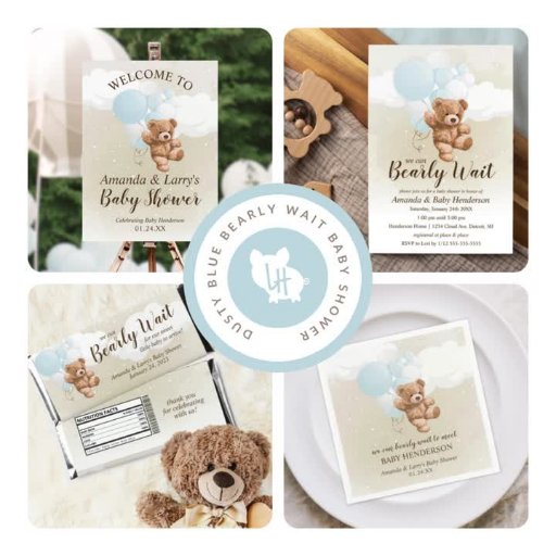 Dusty Blue Balloon Teddy Bear Baby ShowerDesigned by Amanda Cudnik