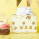 Celebrate the mother to be with this adorable baby shower wrapping paper that has hand drawn bear faces and sweet phrases like “BABY” and “On The Way.” Available in pink, purple/blue, and cream/gold. Perfect for gender reveals, baby showers, or newborn gifts. Customize it with mother to be's name and a one word message.