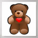 Cute Teddy bear picture poster. Fun teddy bear drawing with red heart wall art gift idea for nursery.