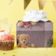 Sweet generic bear with tiny gifts and a miniature Christmas tree on a decorated background