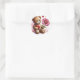 A sweet teddy bear sitting down showing his Valentine's love by holding a red heart with xox on it and a big pink daisy flower adorns this sticker. A cute background with hearts and playful elements. A sticker adds that special touch to your Valentine cards.