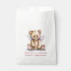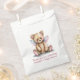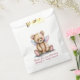 Cute baby shower thank you favour bags done in white, with graphics of a sweet teddy bear with pink and blue wings. Personalise the pink custom text to read what you want.