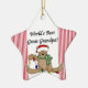 World's Best Great Grandpa customisable teddy bear design keepsake holiday ornament features a teddy bear with holiday lights and a stocking cap and an area on the back of the ornament where you can easily personalise it with a name and year or date or other text!