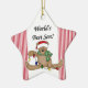 World's Best Son customisable teddy bear design keepsake holiday ornament features a teddy bear with holiday lights and a stocking cap and an area on the back of the ornament where you can easily personalise it with a name and year or date or other text!