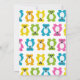 Create the perfect custom party invitation for teddy bear themed birthday parties. These invites feature cute illustration of teddy bears in bright colours of orange, blue, pink, yellow and green and are ready to be personalised with your party details in black lettering. The reverse side has a coordinating pattern of teddy bears.