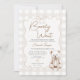 Teddy Bow Neutral Gingham Bearly Wait Baby Shower Invitation