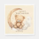 Introducing our adorable 'teddy bear on Moon' baby shower paper napkin, the perfect addition to any baby shower celebration. This charming design features a cute brown bear sitting on a crescent moon, creating a whimsical and enchanting design that will captivate your guests.