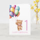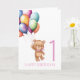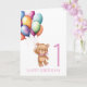 Teddy Pink 1st Birthday Balloons Card