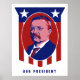 This digitally restored poster features President Theodore Roosevelt and a Red, White, and Blue frame. It reads, "Our President". Celebrate Presidential and American History with this digitally restored vintage poster from The War Is Hell Store.