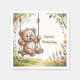 Perfect for a baby boy’s first birthday party. Rope swing with a cute fluffy Teddy bear in watercolor paint with trees and wildflowers.
