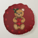 This sweet, brown teddy bear has decked the halls with lights and herself with a bit of holly so she can create a great Christmas mood for giving someone special the gift of a pretty red poinsettia.