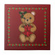 This sweet, brown teddy bear has decked the halls with lights and herself with a bit of holly so she can create a great Christmas mood for giving someone special gift of a pretty red poinsettia. This tile can be framed to create a trivet or placed inside a wooden gift box. Tiles without a frame will also fit inside the gift box to create a matching set.