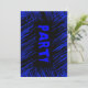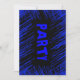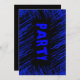 Birthday party invitations for a teenage boy. Black "ticket" type invitation in black with bright blue text and border. Funky grunge type text in dark colours that boys like.