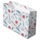 Gift bag with a dental themed pattern. Featuring colourful illustrations of teeth, toothbrushes, and various dental tools.