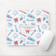 Mousepad with a dental themed pattern. Featuring colourful illustrations of teeth, toothbrushes, and various dental tools.