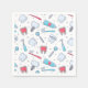 Paper napkins with a dental themed pattern. Featuring colourful illustrations of teeth, toothbrushes, and various dental tools.