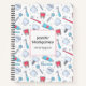 Spiral notebook with a dental themed pattern. Featuring colourful illustrations of teeth, toothbrushes, and various dental tools.