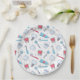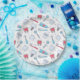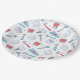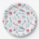 Paper plates with a dental themed pattern. Featuring colourful illustrations of teeth, toothbrushes, and various dental tools.