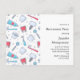 Retirement party invitation postcard with a dental themed pattern. Featuring colourful illustrations of teeth, toothbrushes, and various dental tools.