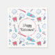 Paper napkins with a dental themed pattern. Featuring colourful illustrations of teeth, toothbrushes, and various dental tools.