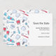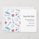 Save the date card with a dental themed pattern. Featuring teeth, toothbrush, and dental tools.
