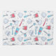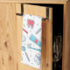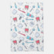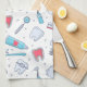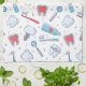 Kitchen towel with a dental themed pattern. Featuring colourful illustrations of teeth, toothbrushes, and various dental tools.