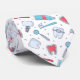 Patterned tie with a dental themed pattern. Featuring colourful illustrations of teeth, toothbrushes, and various dental tools.