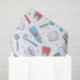 Tissue paper with a dental themed pattern. Featuring colourful illustrations of teeth, toothbrushes, and various dental tools.
