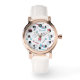 A watch with a dental themed pattern. Featuring colourful illustrations of teeth, toothbrushes, and various dental tools.
