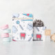 Wrapping paper with a dental themed pattern. Featuring colourful illustrations of teeth, toothbrushes, and various dental tools.