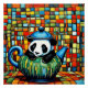 A.I. created surreal print of a Panda peeking out from a colourful teapot, surrounded by a vibrant mosaic of geometric shapes, patterns of bold hues.