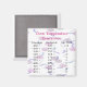 This magent is pretty and useful. It features a background of pretty abstract flowers. In front is a temperature conversion from Fahrenheit to Centigrade to Gas Mark and back again. Perfect for anyone who has a cook book from a different country or someone who has moved to another country!