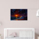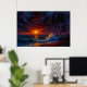 A blaze of sunset ruptures the storm—golden light colliding with wind-torn palms and crashing surf. In this moment of elemental tension, nature is both violent and sublime. The swirling clouds, rendered in bruised reds and purples, echo the emotional turbulence beneath the surface. Waves rise like breath held too long, and the beach glows with the last embers of day. This piece invites viewers to stand in the eye of beauty and chaos, where endings burn brightest.