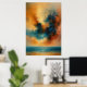 A symphony of motion and stillness, Tempest Serenity captures the abstract tension between sky and sea—between chaos and calm. Swirling clouds in fiery orange, golden yellow, and deep indigo erupt across the canvas, echoing the emotional turbulence of a storm in transition. Below, a tranquil ocean reflects the drama above in softened blues and turquoise, grounding the viewer in quiet contemplation.