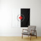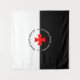 "non nobis domine non nobis sed nomini tuo da gloriam" surrounds a red Templar Cross on a black and white flag background, with the Alpha and Omega symbols.