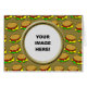 Tasty cheeseburger template border design. Just replace the background template with your own family photo or funny face. Image available on various gifts and products.