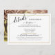 TEMPLATE. Customise with the wedding information you need to communicate to your family and friends. An elegant gold, thin border and divider line with script handwriting "details." On the reverse side an engagement photo session image. Art and design by internationally licensed artist and designer, Audrey Jeanne Roberts, copyright.