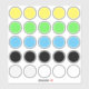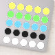 This template is for 25 individual 1.5" round sticker labels on one 8" x 8" sheet, each of which you can design differently. Simply arrange your text to fit within the coloured circles. You can choose any colour you like for each individual sticker. Click the big blue "Edit Design" button, then in the design screen click on a circle and choose a colour for it from the right-side menu.