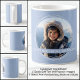 Available in an array of colors to suit every taste. This unique design offers space for a cherished photo, artfully displayed in circular 'porthole' frame, breaking away from the conventional rectangle or square formats. The photo is encased in a modern, randomly designed thin white outline, adding an artistic touch to your precious memories. There’s also plenty of space to add heartfelt sentiment. This mug is more than just a vessel for a favorite drink; it's a reminder of the joy and love that surrounds the owner. Perfect for gifting or as a special addition to your own home, it's designed to keep your loved ones close, no matter the distance.