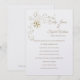 This wedding invitation is shown in a classic layout on a White background shown in a paper choice of Peal Shimmer. Select your choice paper. Graphic of Golden looking floral and vine pattern in the top front left corner . Couple's Names in top right section. Body text shown in Golden-colour beneath their names. Customise this item by taking the sample text and putting your information in it instead.