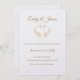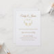 This wedding invitation is shown in a classic layout on a White background shown in a paper choice of Peal Shimmer paper. Select your choice paper. Fancy swirl heart graphic in Gold colour. Couple's Names highlighted in a Golden-colour at top. Body text shown in Golden-colour beneath the heart. Customise this item by taking the sample text and putting your information in it instead.