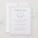 This wedding invitation is shown in a classic layout on a White background shown in a paper choice of Peal Shimmer paper. Select your choice paper. Fancy swirl heart graphic in Silver-Grey colour. Couple's Names highlighted in a Silver-Grey-colour at top. Body text shown in Silver-Grey-colour beneath the heart. Customise this item by taking the sample text and putting your information in it instead.