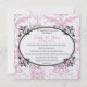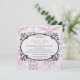 Shown in an ever popular Pearl shimmer, this invite has a Pastel Pink Coronation pattern printed in the background on the front and on the back. A Black Oval with fancy leaf-vine work frames the text inside. Bride and Groom's names are highlighted in a soft Pink and the newlyweds last name in Golden. Body of text shown in Black. Choose your paper choice and customise from their if desired.
