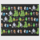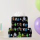 Black wrapping paper featuring all the monsters from the book The Ten Little Monsters Standing in a line.
