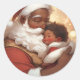 "Tender Moments: Black Santa with Sleeping Baby" Classic Round Sticker