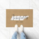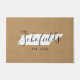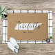 Modern farmhouse personalised doormat with your family name inside your state map. Faux burlap canvas texture background. Click Customise It to add your own text and images and create a unique one of a kind design!