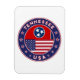 Badge of Tennessee design with flag of Tennessee and American flag, rounded shape, luggage tag style for travel lovers.