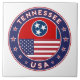 Badge of Tennessee with flag of Tennessee and flag of USA colours, rounded shape.